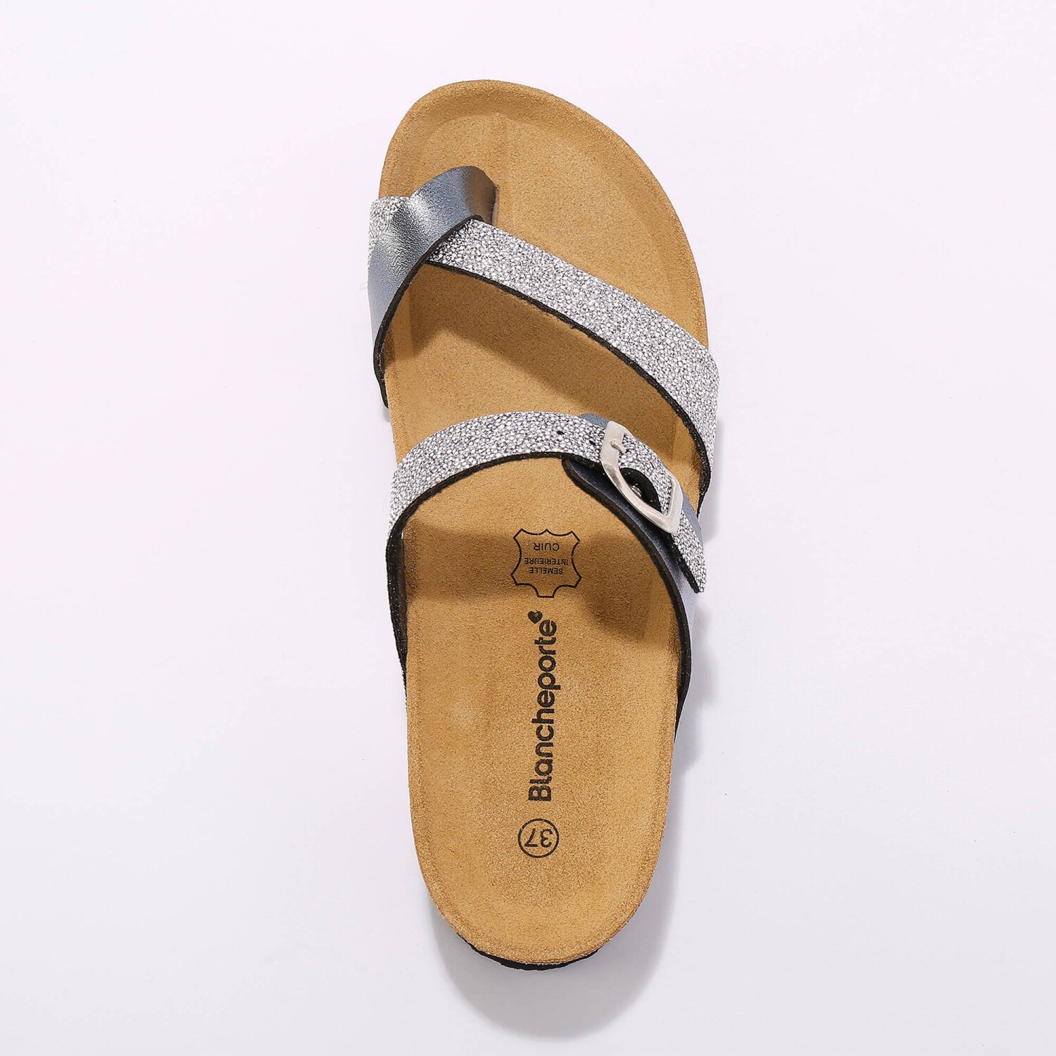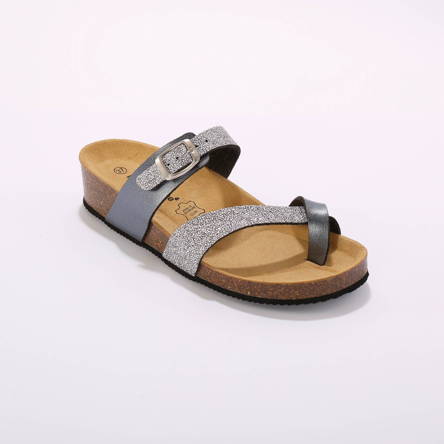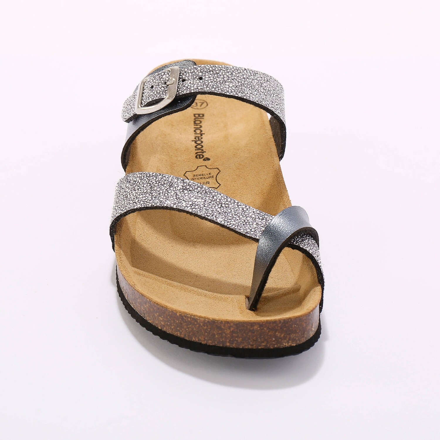 Wyprodukowane w Hiszpanii z gwarancją jakości, te lśniące kapcie z paskiem między palcami od razu nas zachwyciły. Z anatomicznie wyprofilowaną, skórzaną wkładką dla wygody chodzenia. Pasek na podbiciu regulowany metalową klamrą. Paski między palcami zapobiegają nieprzyjemnemu otarciu. Podeszwa z korka. Wyprodukowane w Hiszpanii. Możesz przetrzeć nowe buty wacikiem nasączonym odrobiną mleka toaletowego, zwróć również uwagę na impregnację.
