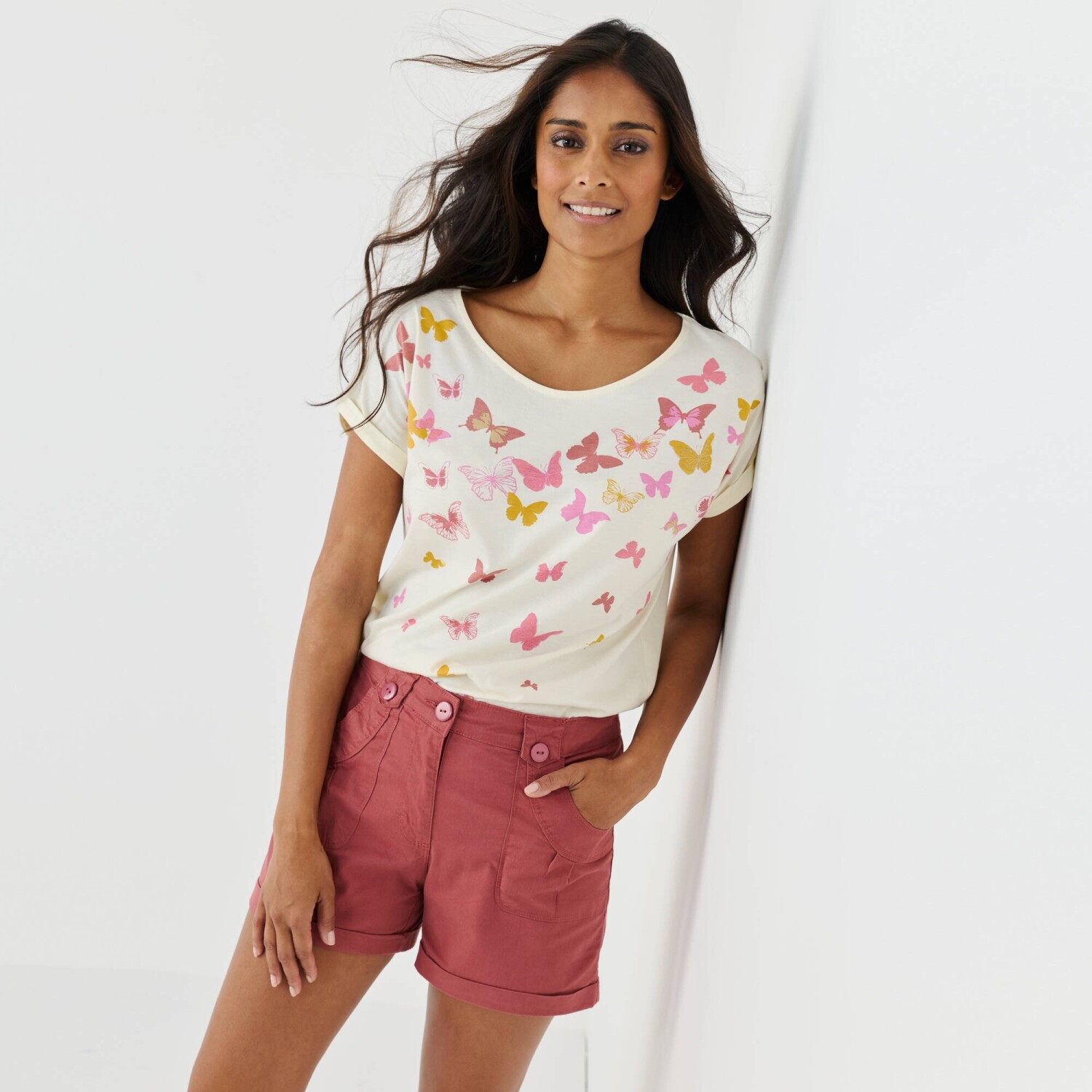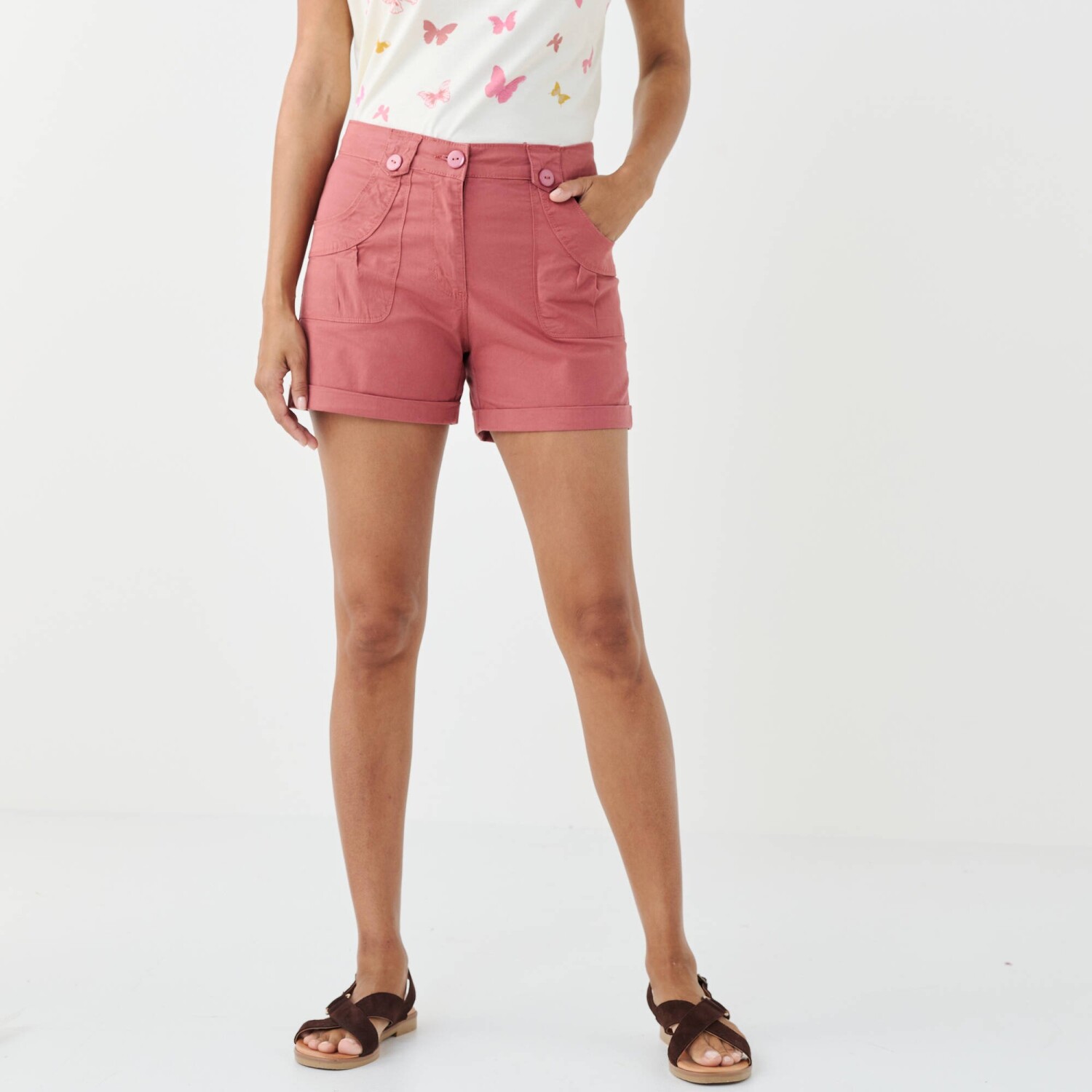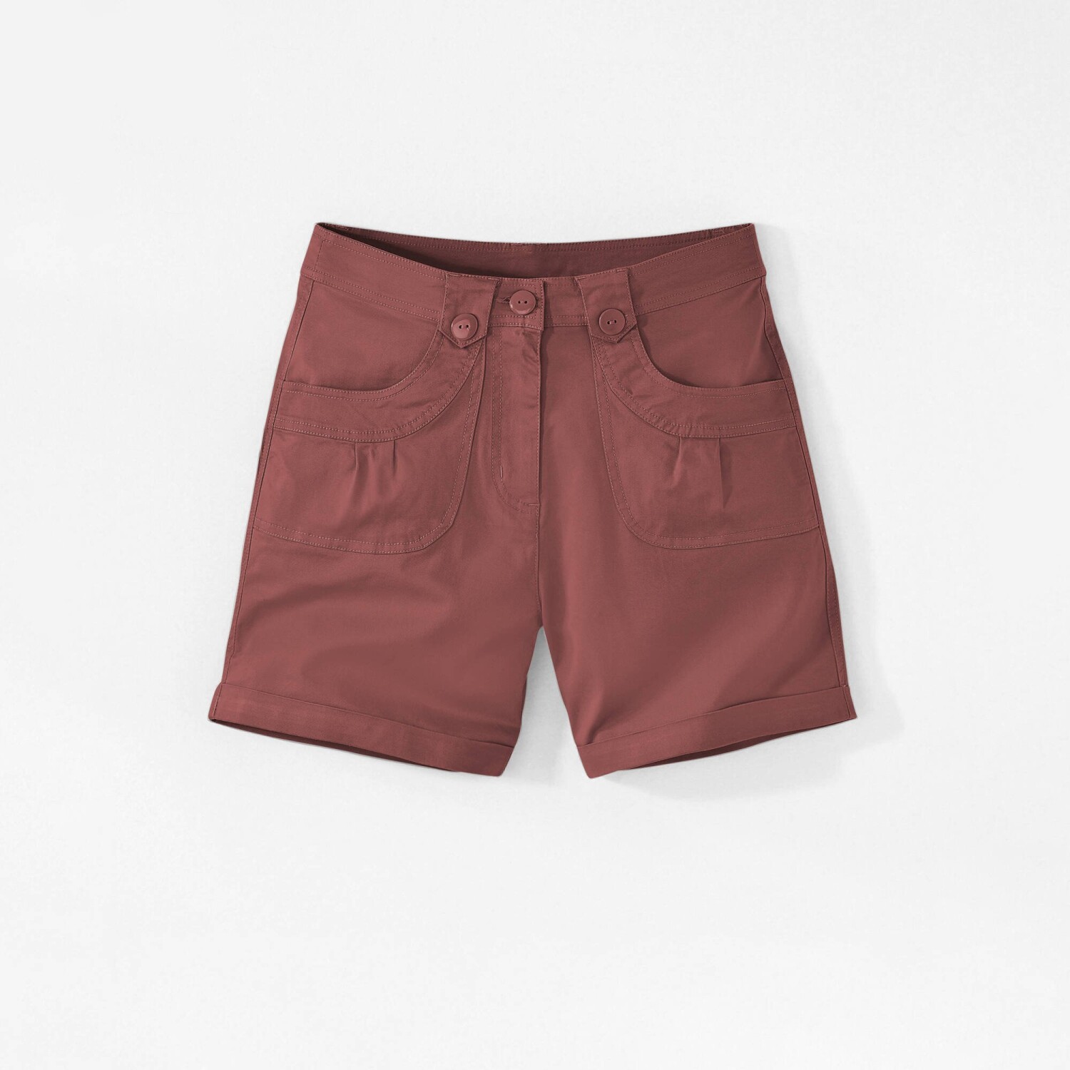 Luźny wygląd, piękne odcienie i łatwy w pielęgnacji materiał... Tych szortów na pewno nie zabraknie w mojej walizce! Szorty o prostym kroju, regularna wysokość talii. Wyprofilowana talia z szerokimi szlufkami, gumka z tyłu po bokach od rozmiaru 44. Zapięcie na suwak i guzik. 2 naszyte kieszenie z przodu i z tyłu. Sznurki ściągające z tyłu. Nogawki zakończone zakładką. Rozciągliwy materiał. Standard 100 według Oeko-Tex (nr CQ 1236/3 IFTH). Znak ten identyfikuje produkty tekstylne, które zostały poddane testom laboratoryjnym pod kątem szerokiej gamy szkodliwych substancji, a produkt jest bezpieczny poza obowiązującymi normami. Można prać w pralce.