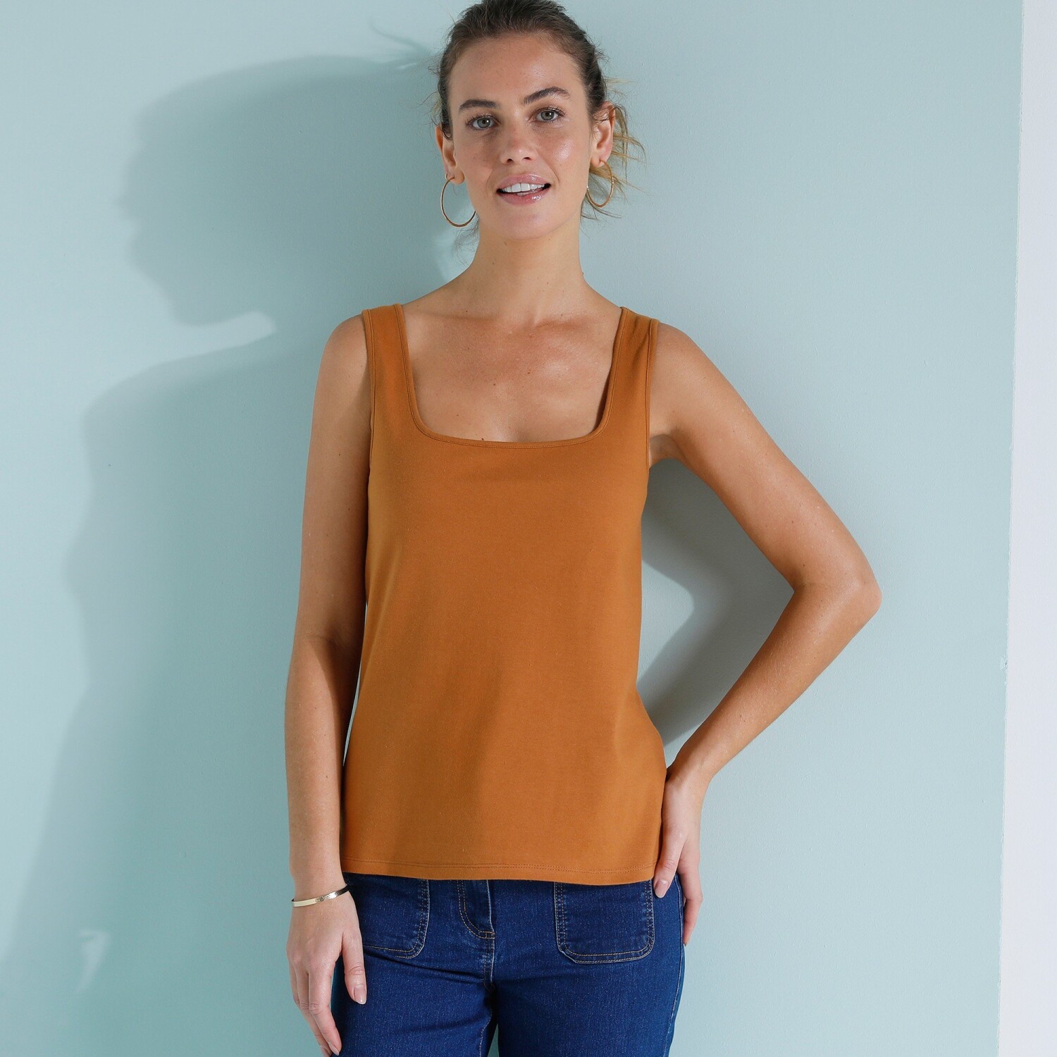 Top w jednolitym kolorze z wąskimi ramiączkami i koronką