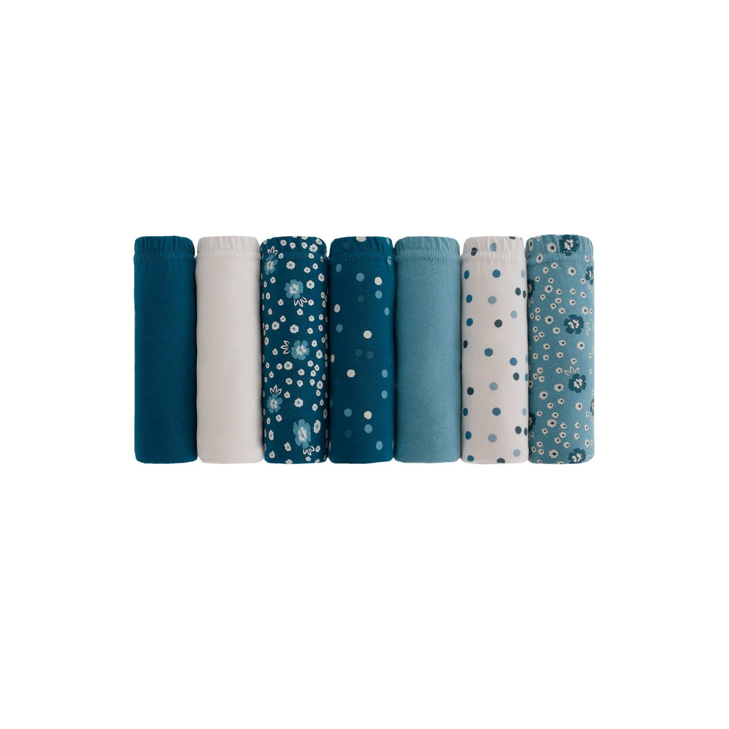 Zestaw 7 bawełnianych majtek maxi w jednolitym kolorze z kwiatowym nadrukiem